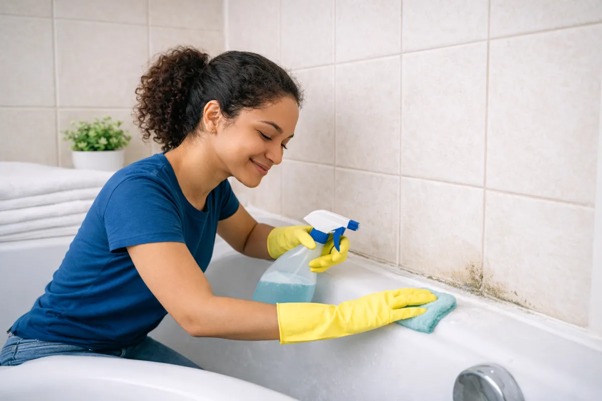 Cleaning of visible surface mold on bathrooms, showers, and tiled areas.